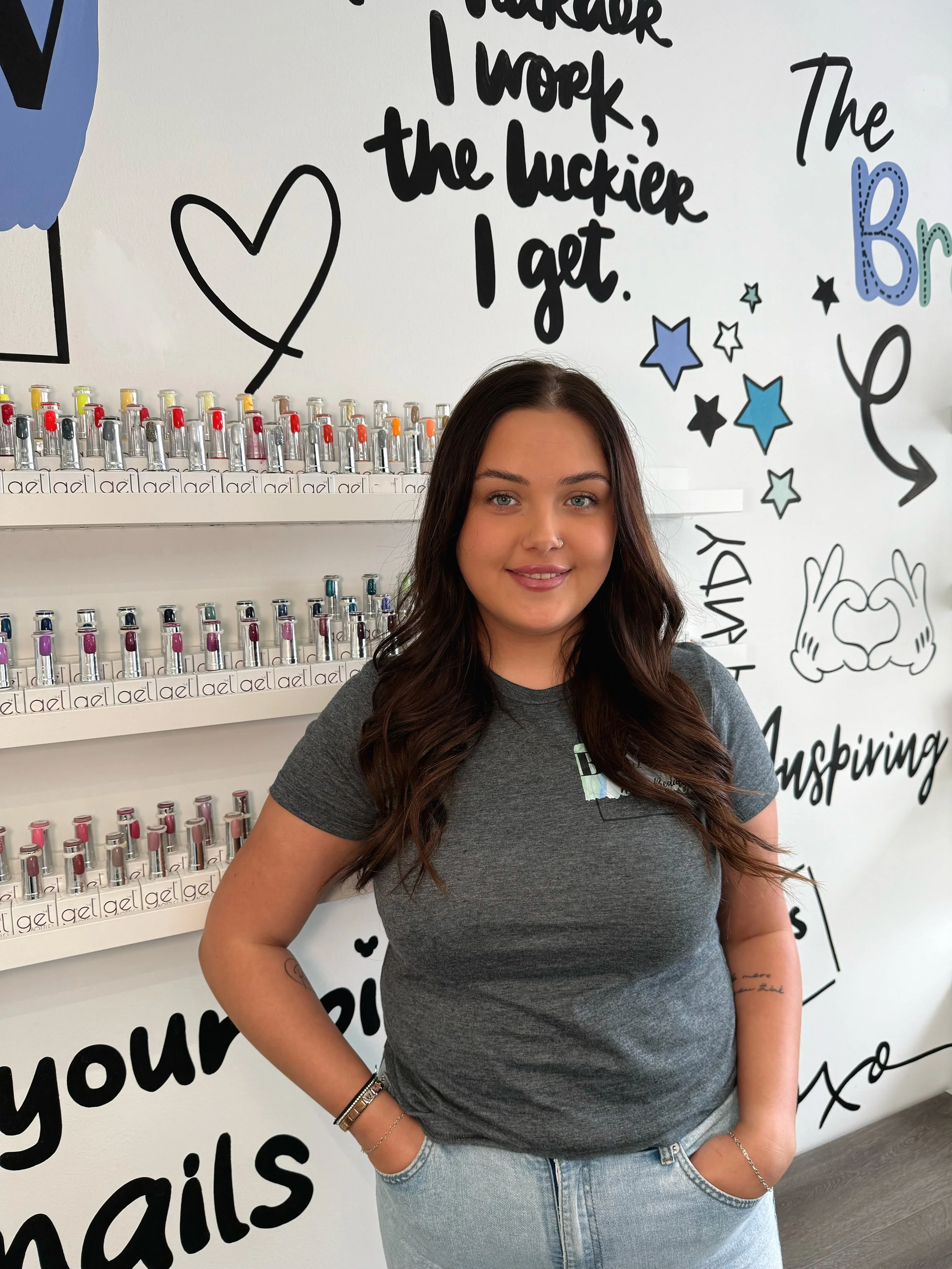 Now working full-time as a nail technician and trainer, Kerrie specialises in bespoke pedicure services, detailed nail art, and our ever-popular mystery manis. She’s also a key part of our education team, delivering high-quality training with a focus on technique, creativity, and confidence building.